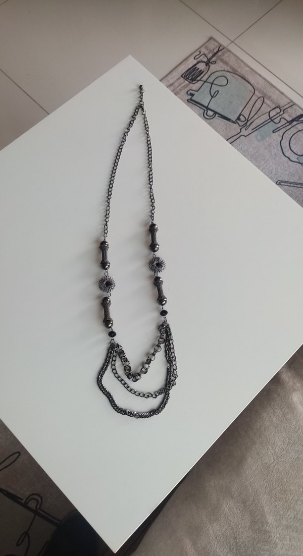 Uzun siyah renkte, zincir detaylı ve yılan desenli kolye. Gotik ve bohem tarzıyla günlük kullanıma uygundur.