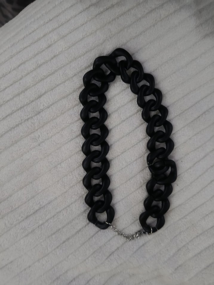 Uzun siyah zincir detaylı, desensiz gotik tarzda günlük kullanıma uygun kolye.