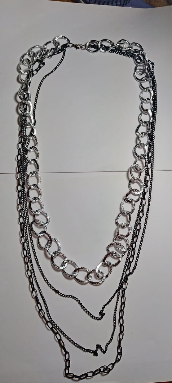 desenli detaylı zincirlere sahip uzun siyah kolye, gotik tarz için uygundur.