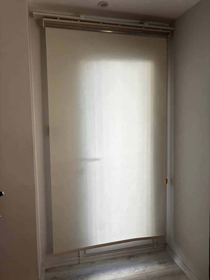 116x205cm krem rengi stor perde. Yakından bakınca belli olan bazı lekeler var fotoğrafta belirttim ayrıca son fotoğrafta görüldüğü üzere plastik parçada çatlak var ama kullanılma engel değildir.