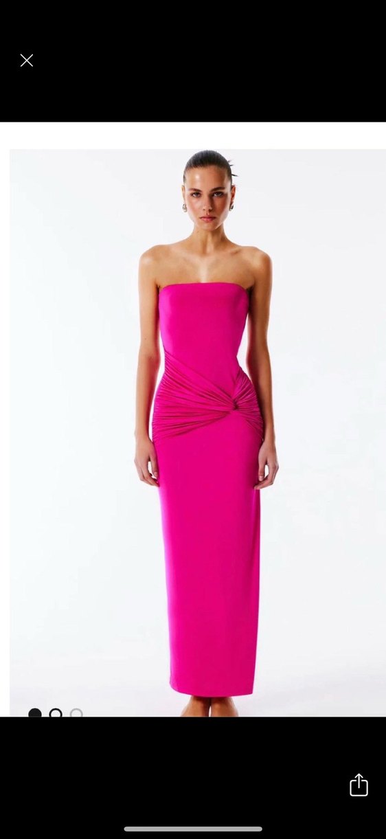 Uzun Straplez Pembe Drapeli Kadın Elbise love on friday