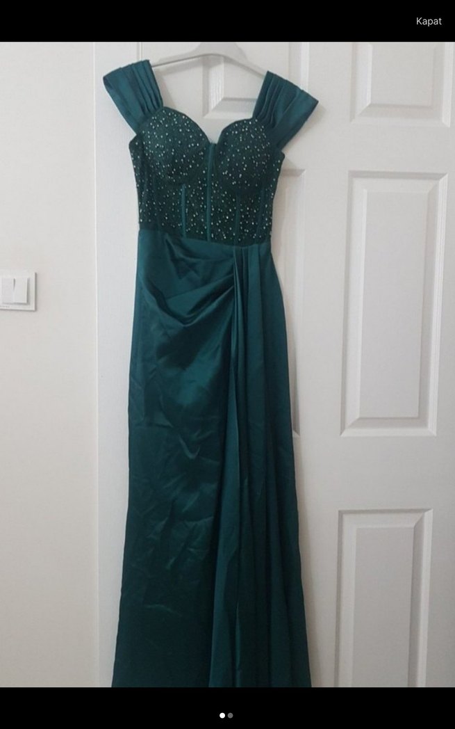 Uzun Straplez Turkuaz Abiye Elbise - Görsel 2