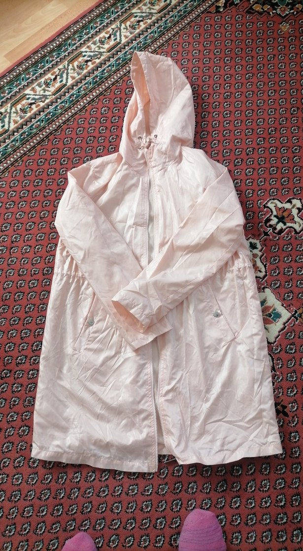 Uzun toz pembe Kapüşonlu Kadın Yağmurluk sadece 1 kez kullanıldı