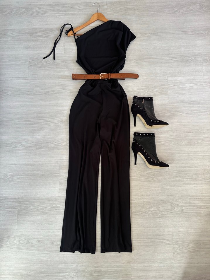 Siyah tam boy esnek uzun tulum s ve m uyumlu yeni sezon hiç kullanılmadı kemer dahil değildir
