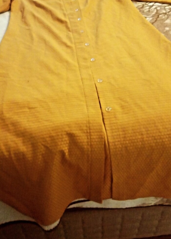 Bir kaç kez giyildi sadece ama son görselde tırnak ucu kadar küçük bir yanık var hardal sarısı renginde