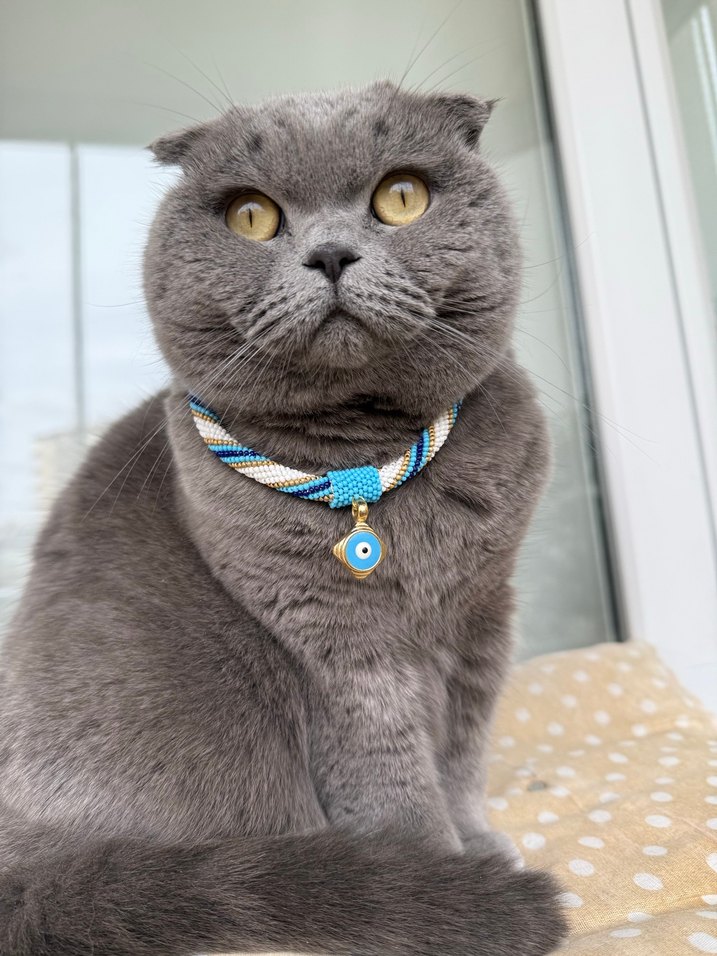 Uzun Turkuaz Boncuklu Bohem Desenli kedi kolyesi