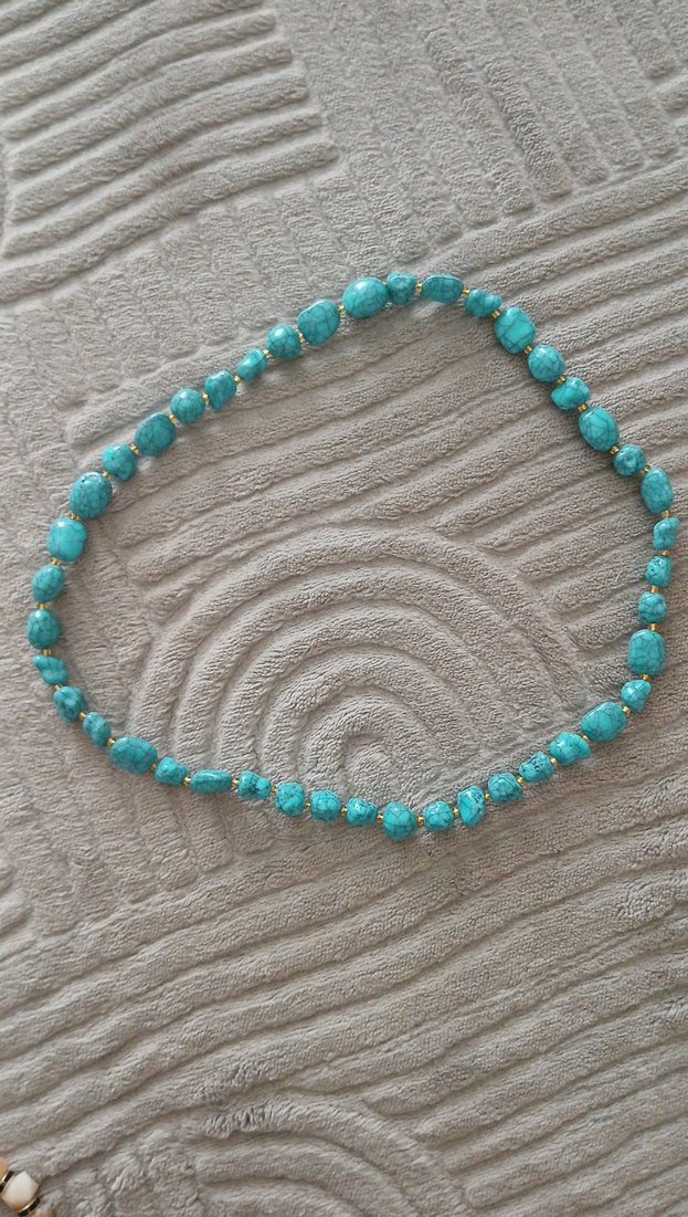 Canlı renkli taşlar ve hafif yılan deseniyle uzun turkuaz boncuklu kolye, bohem tarz için günlük kullanıma uygundur.