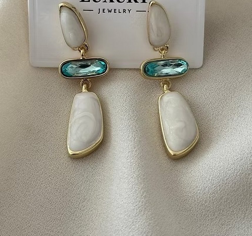 Uzun turkuaz renkli, boncuk detaylı ve bohem tarzda küpeler. Düğünlerde klasik şıklık için uygundur.