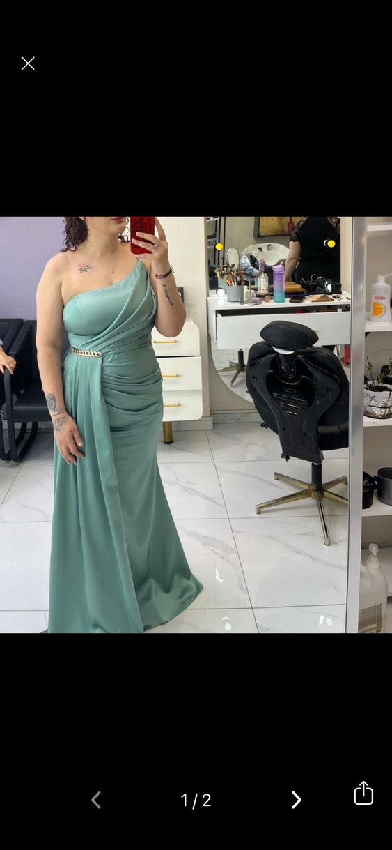 Bu dar kesim turkuaz abiye elbise, straplez yaka ve drapeli detaylara sahiptir. Uzun boylu, yırtmaçlı ve kemerli tasarımıyla düğünler için uygundur. Kendi nişanımda giydim herhangi bir deforme yoktur 42 bedendir