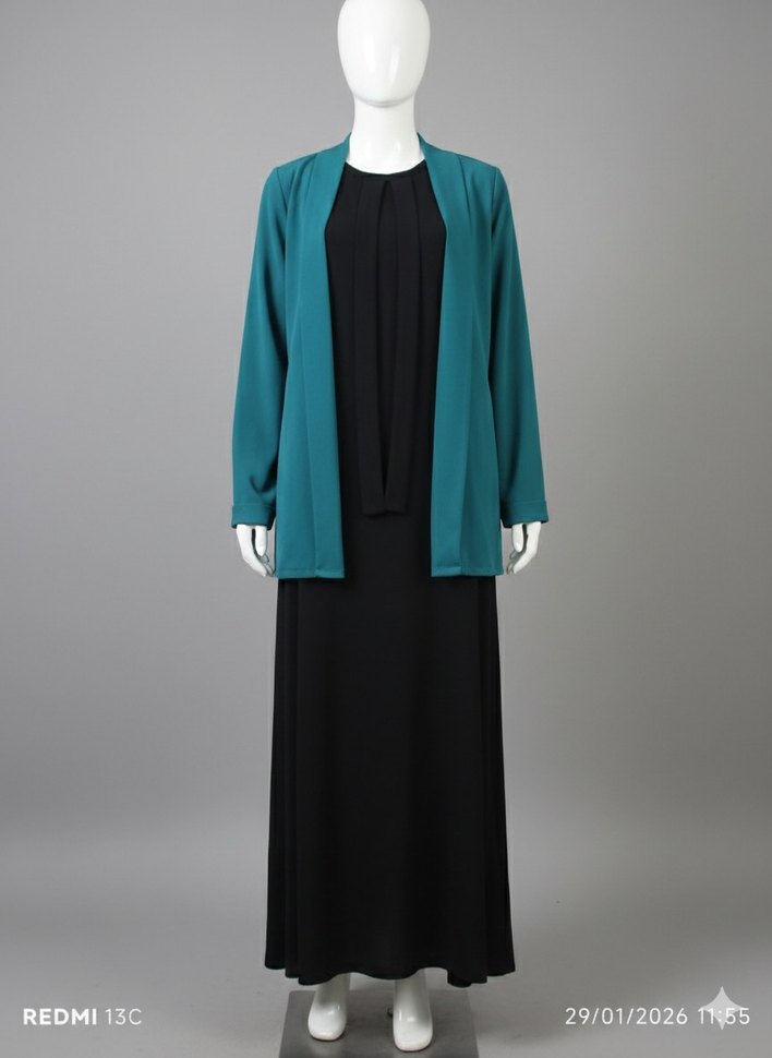 Uzun boylu, turkuaz renkli drapeli ve regular fit. Notch yaka, uzun kol, sade ve modern tarzda, ofis için uygun.