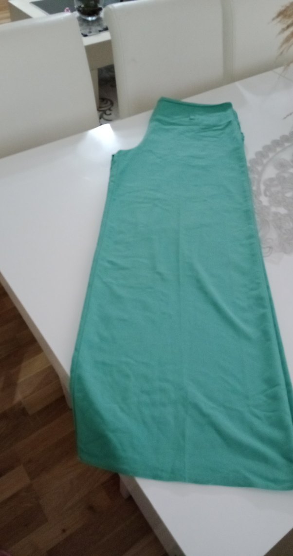 Uzun turkuaz hamile eteği, dökümlü tasarıma ve rahat regular fit kesime sahiptir. Yumuşak sentetik kumaştan üretilmiş, günlük kullanım için uygundur. Düz ve pastel rengi minimalist normcore tarzına uygundur.