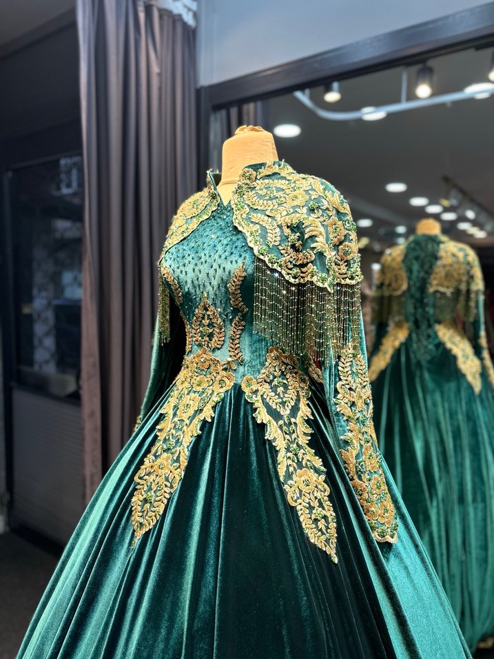 Fitted kesim, uzun boy, yüksek yakalı ve uzun kollu bu kına elbisesi, parlak turkuaz kumaş ve detaylı nakışlarla süslenmiş, düğünler için uygun. Ürünümüz daha önce kullanılmıştır.Arkası ipli olduğu için bedeni ayarlanabilir. İç kısmındaki paylardan da büyütülebilir.36-40 bedene kadar kullanılabilir. ütü veya tadilat gereken ürünler, ütü ve tadilat yapılarak gönderilecektir. Tarlatan dahil değildir. Ek fiyattır. +1000 tl. Bone, tülbent ve hayaltül paketi isterseniz ek ücret +1000 tl. sıfır beş dört dört iki sıfır beş sekiz altı beş altı TOPTAN ALIM İÇİN İLETİŞİME GEÇEBİLİRSİNİZ 2 ÜRÜN VE ÜZERİ TOPTAN FİYAT GEÇERLİ #nişanlık #kınalık #kaftan #gelinlik #gelin