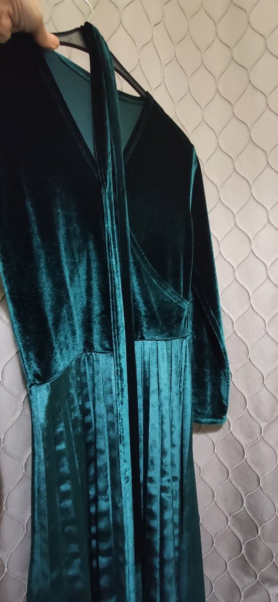 Drapeli, V yakalı ve uzun kollu bu uzun turkuaz elbise, yumuşak sentetik kumaştan yapılmıştır. Bol kesimiyle bohem tarzını yansıtır, günlük kullanıma uygundur.