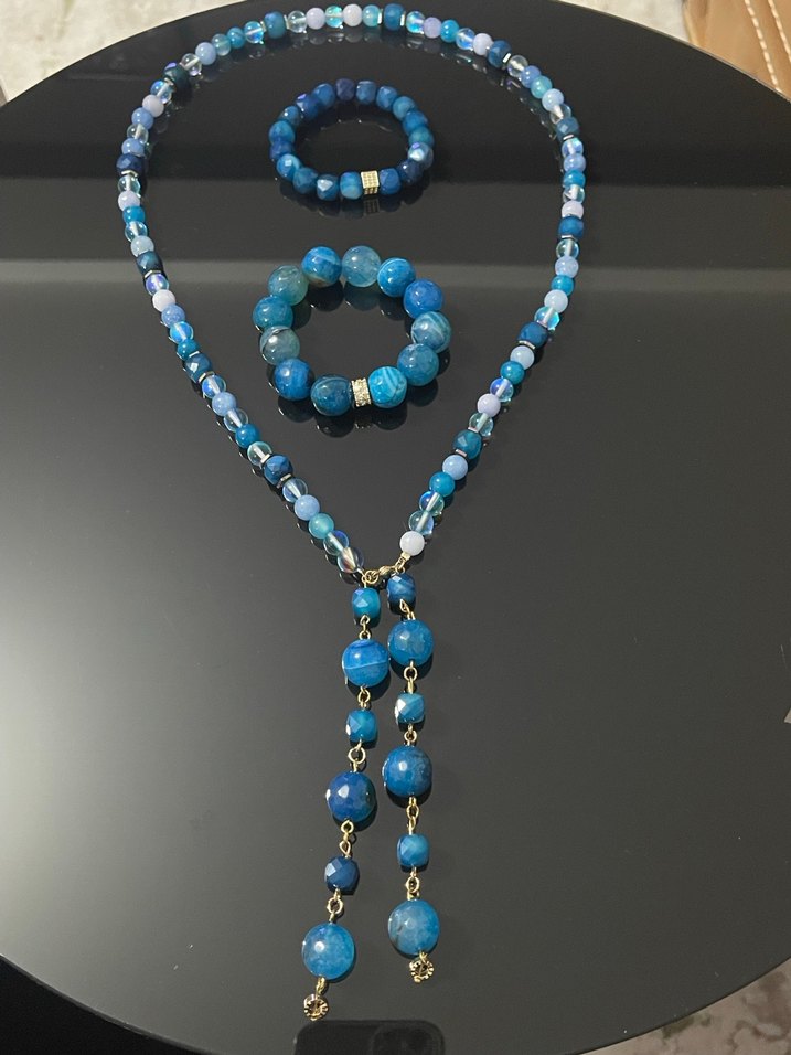 Uzun Turkuaz ve akik Boncuklu Bohem Kadın Kolye