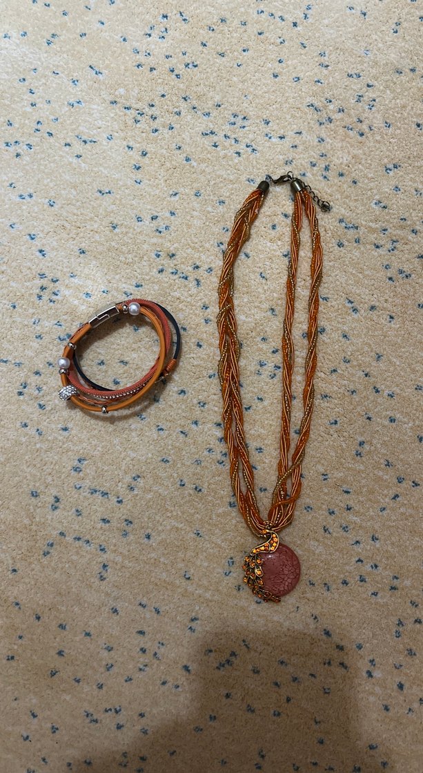 Uzun turuncu Yılan Desenli Boncuklu Kolye