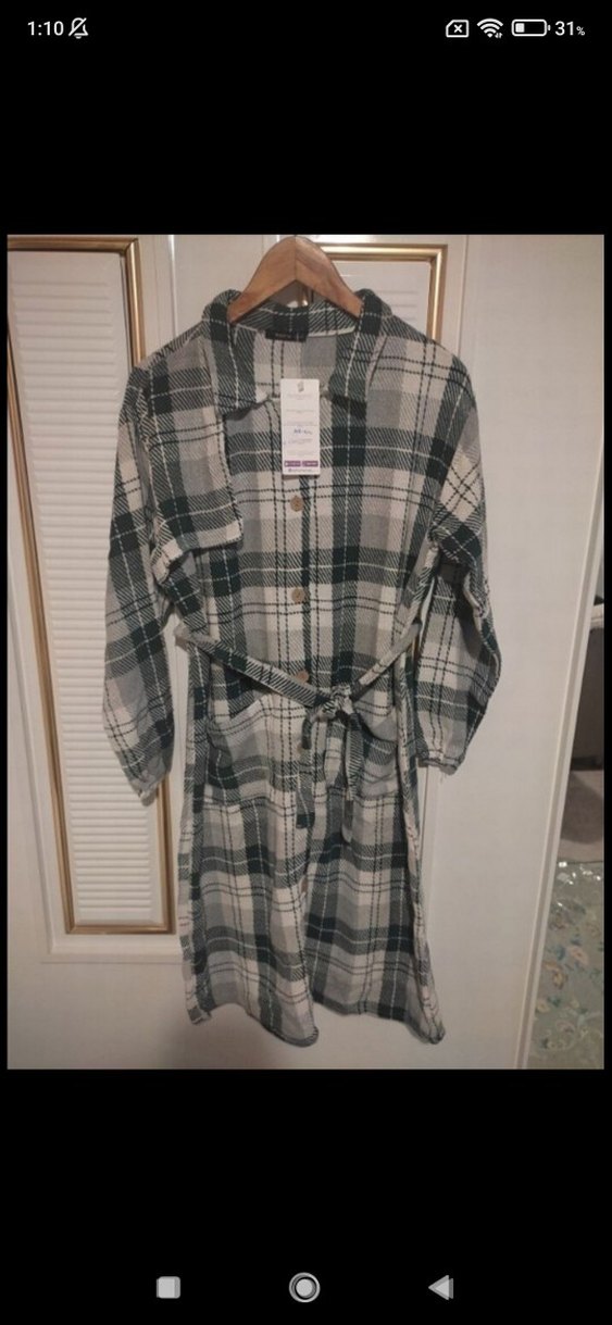 hiç kullanılmamış yenidr 42-44 beden iki kol arası 55 cm boyu 108 cm tuvit kumaş gömlek tunik