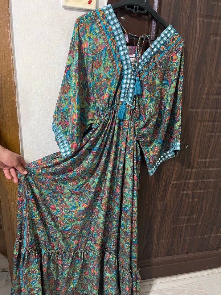 Sırt baglama detaylı otantık elbıse on ıslemelı