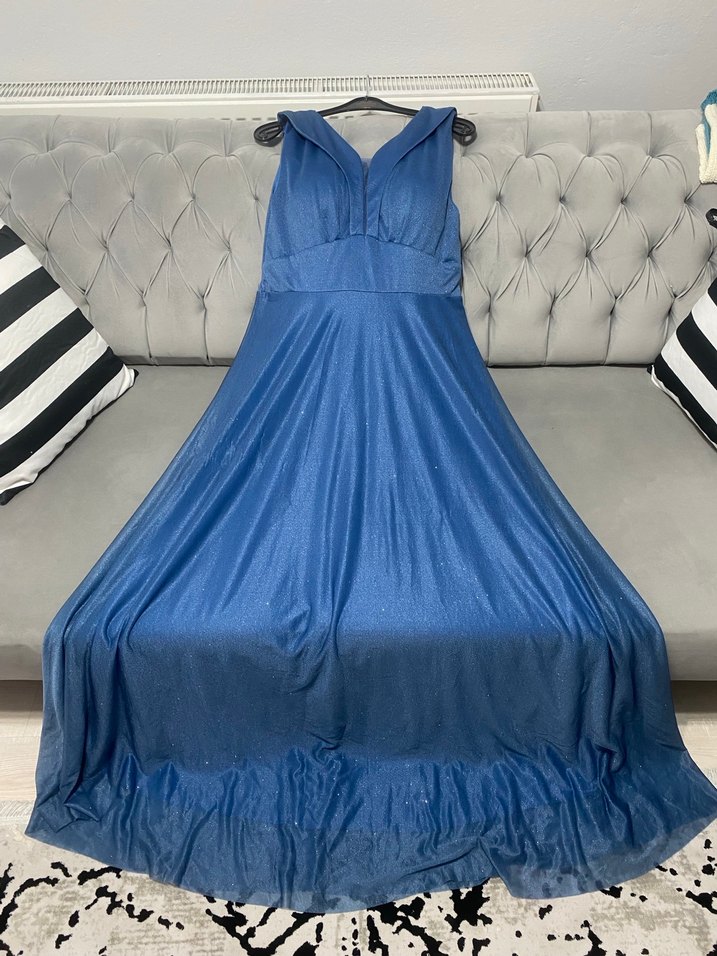 Uzun, V Yakalı, Drapeli Parlak Mavi Abiye