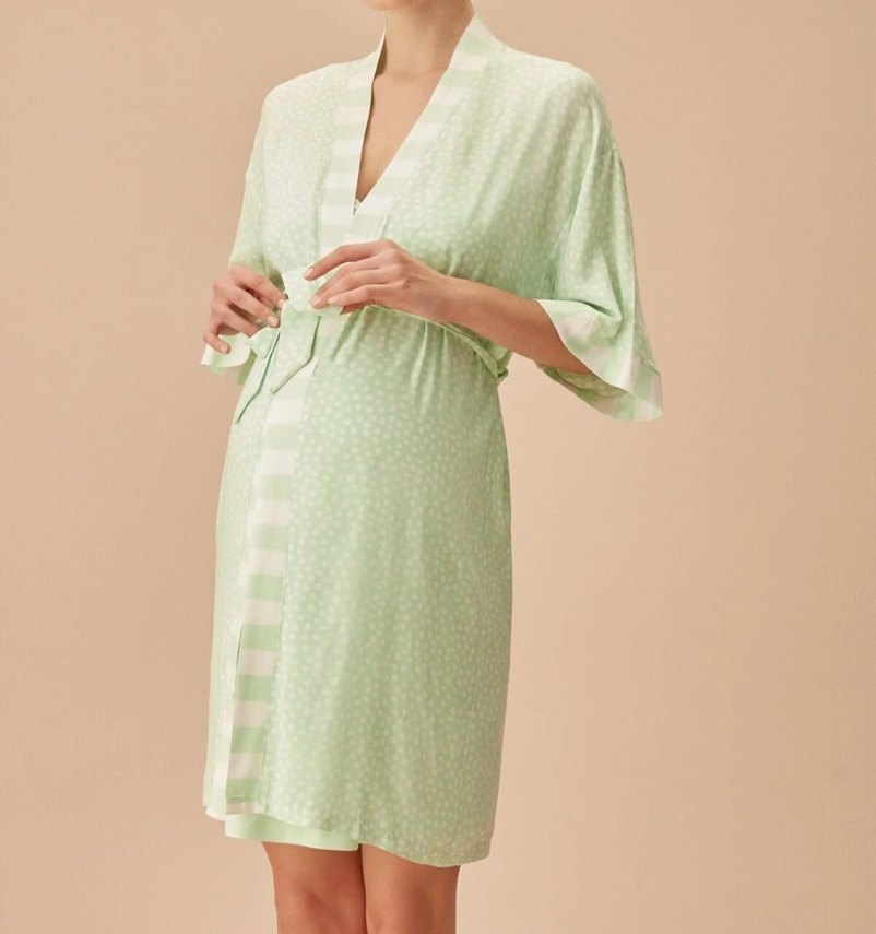 Uzun V Yakalı Yeşil Hamile Gecelik
