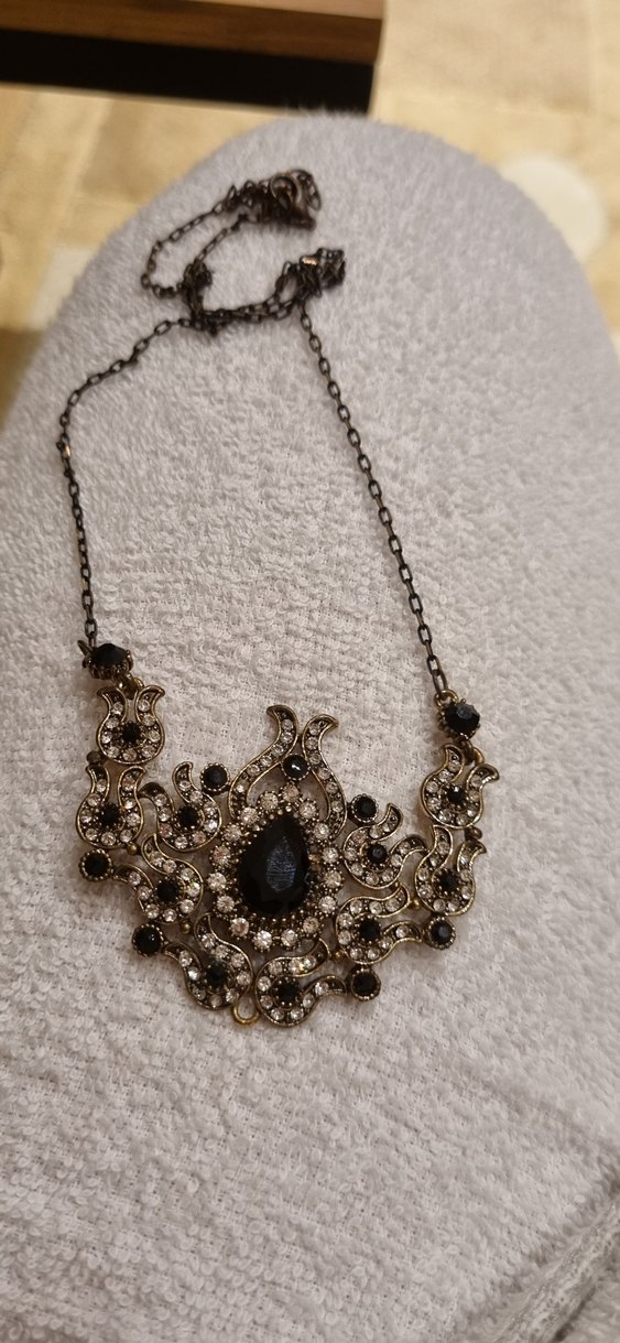 Uzun Vintage Siyah Boncuklu Gotik Kolye