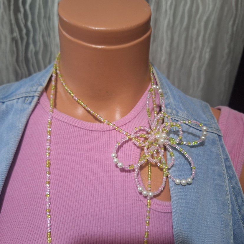 Winx Flora esintili Uzun, ayarlamali 136 cm el yapimi Ucunda kelebek charmi var chocker olarak da kullanilabilir boynu iki defa dolanir