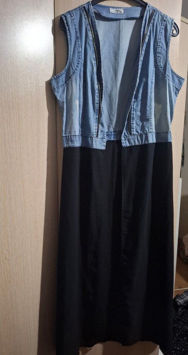 uzun, kolsuz alt tarafı tül,üst tarafı kot olan bol kesim yelek. Günlük sokak stiline uygundur.