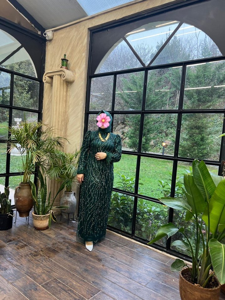 Uzun Yeşil Bohem Kadın Abiye Elbise