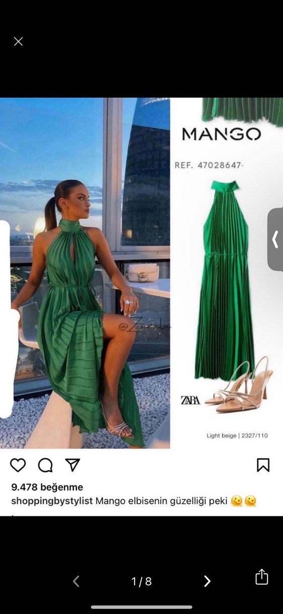 Uzun yeşil Drapeli saten Elbise
