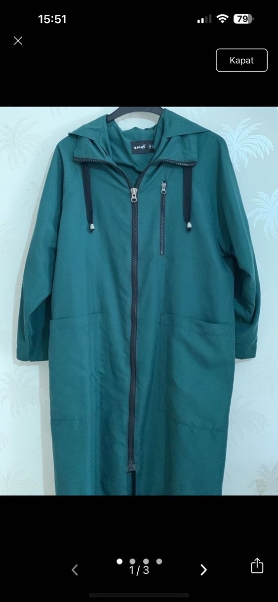 Rüzgarlık yağmurluk iki kol arası 56 cm boy ön 100 cm arka 108 cm ürün %65 pamuk %35 polyester ürün rengi tam yansımadı biraz daha koyu yeşil acı yeşil tarzında ürün S beden ama kalıp geniş 36-42 arası kullanıma uygun