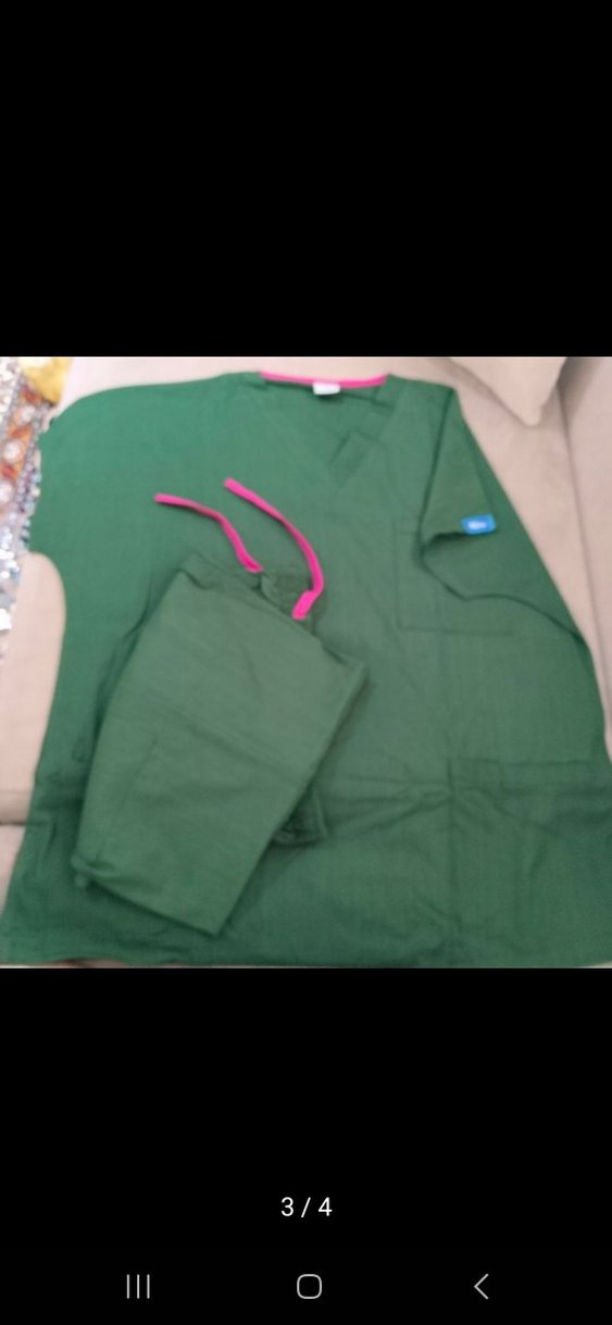 Uzun, bol kesim hemşire önlüğü, kısa kollu ve yuvarlak yakalıdır. Canlı yeşil renkte, desensiz ve rahattır. 1 kere giyildi . Alt dahil.
