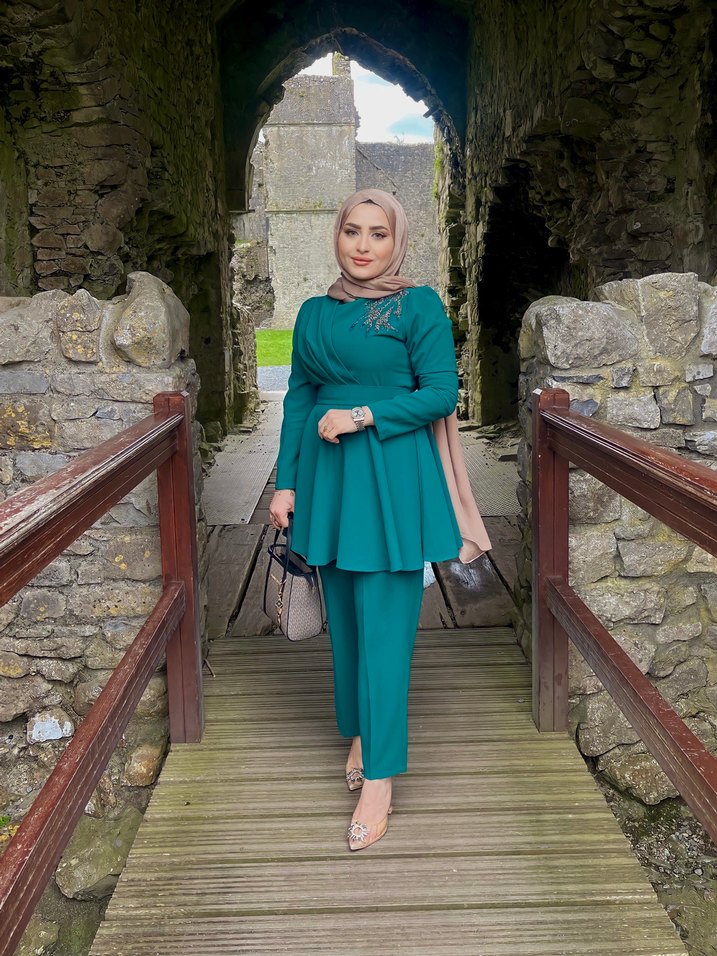 Uzun yeşil Kadın Takım Elbise
