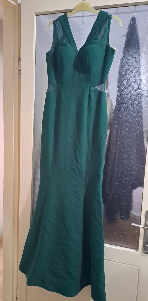 Uzun Yeşil V Yaka Kolsuz Kadın Abiye