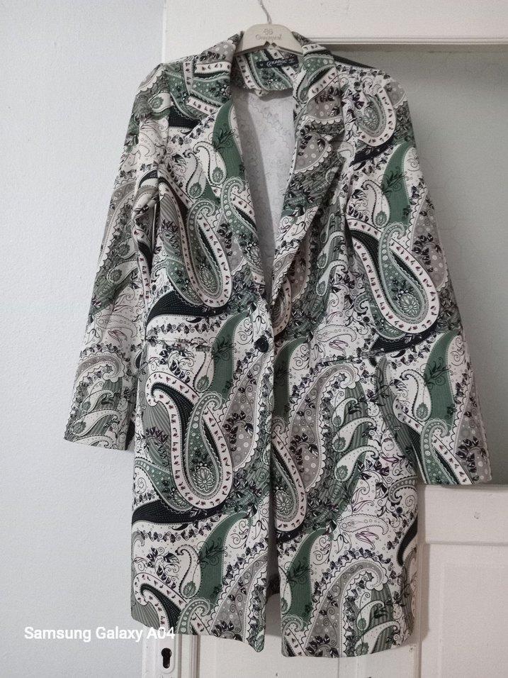 Yeşil ve gri yılan desenli, uzun yaka ve uzun kollu bayan ceket