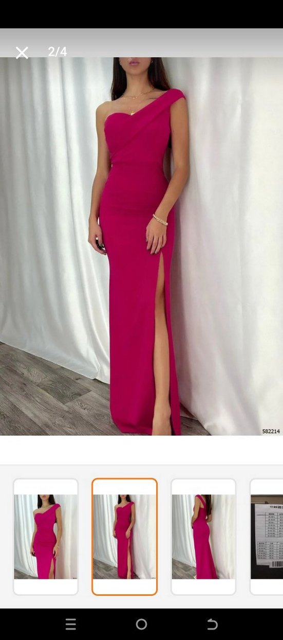 Uzun, Yırtmaçlı, Tek Kol Fuşya Abiye Elbise