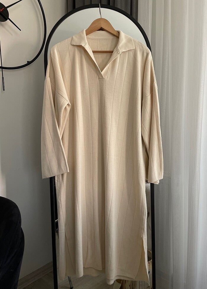 Uzun yırtmaçlı triko elbise
