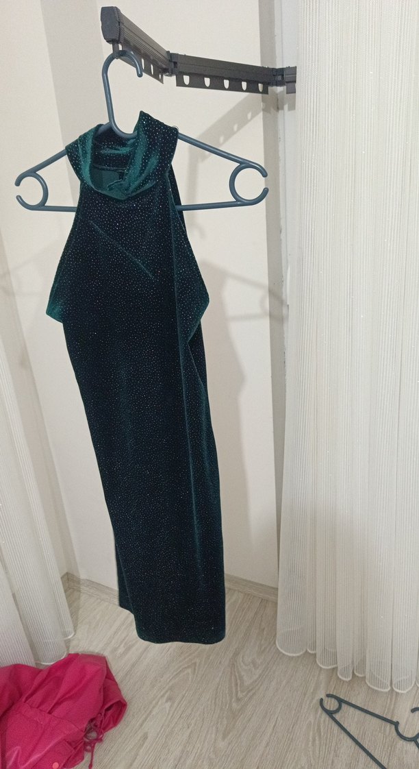 Uzun, Yüksek Yakalı, Drapeli Kadın Gece Elbisesi