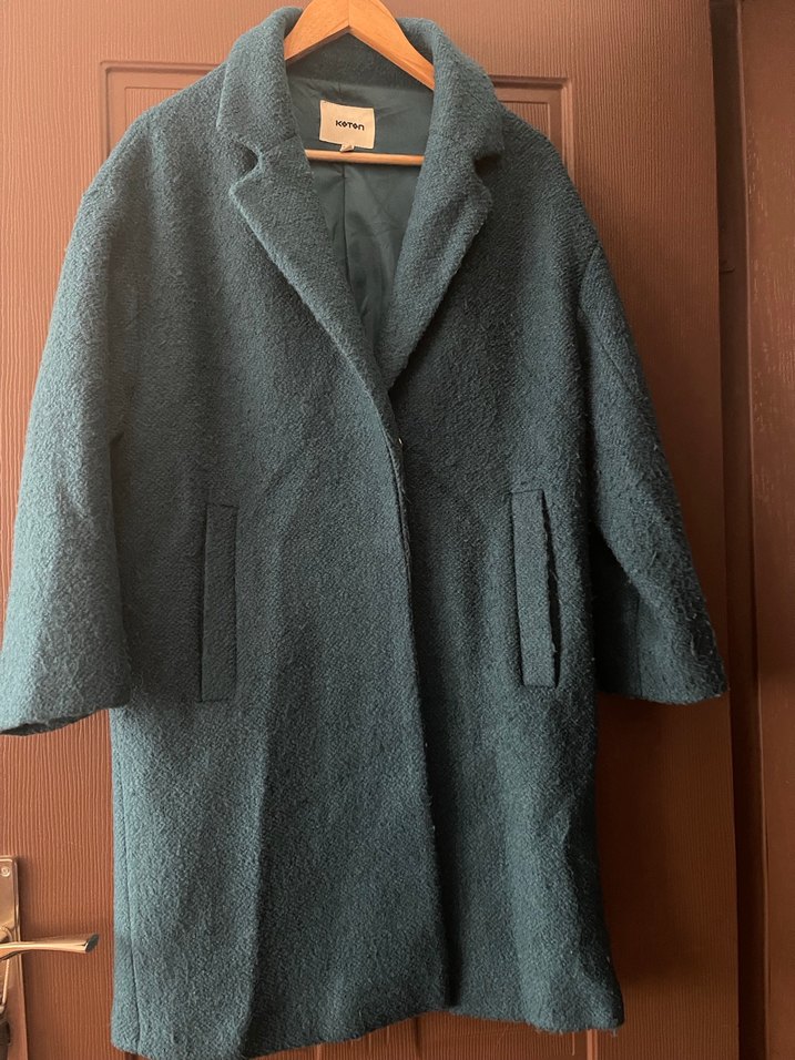 Uzun, yumuşak dokulu koyu yeşil kaban