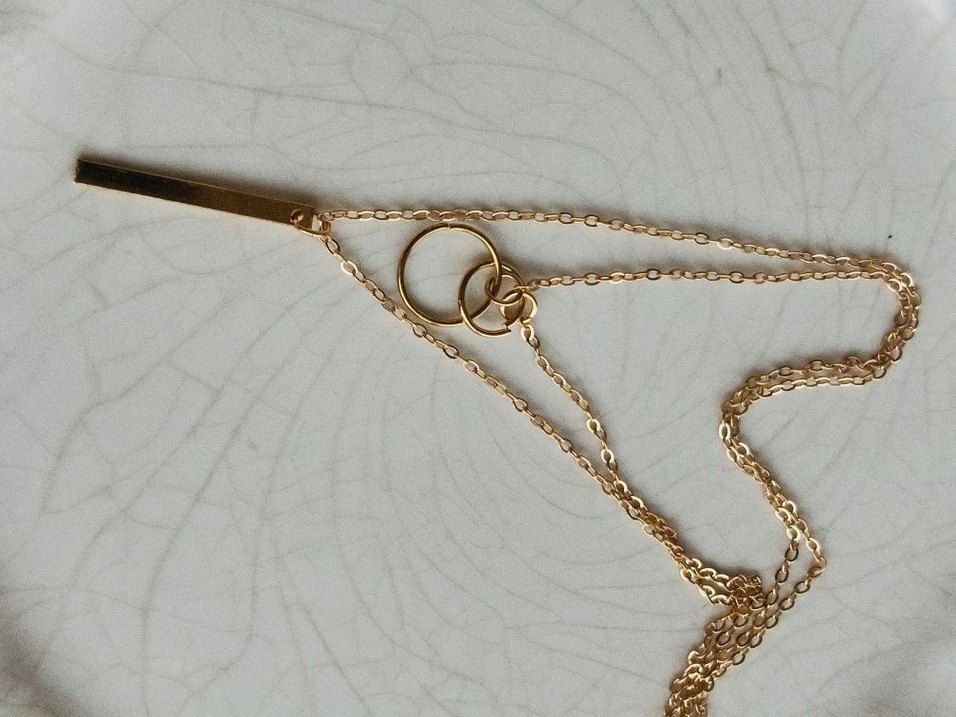 Uzun uzun zincir detaylarına sahip, minimal ve bohem tarzda parlak altın kadın kolye, günlük kullanım için uygundur. ✨