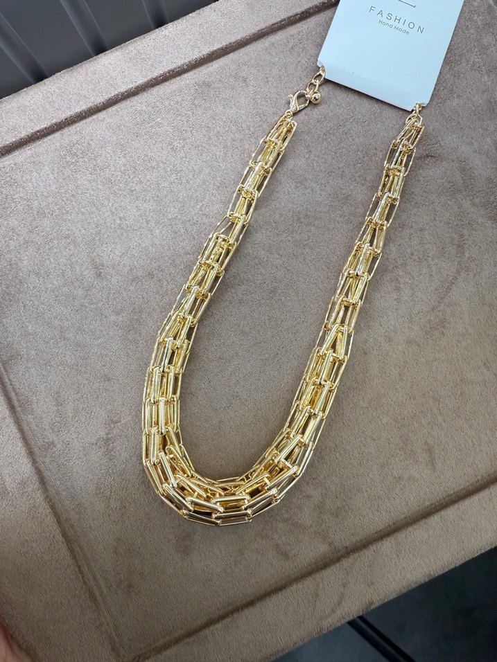 Parlak yüzeyli, zincir detaylı uzun altın kolye. Paris tarzı ve günlük kullanıma uygun. Üzerinde "FASHION" yazan etiket bulunmaktadır. ✨