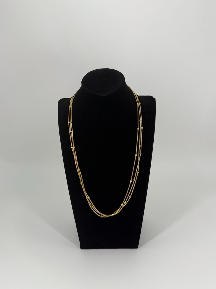 Uzun zincir detaylı, minimal ve çağdaş tarzda altın kadın kolye, günlük kullanıma klasik zarafet katıyor. ✨