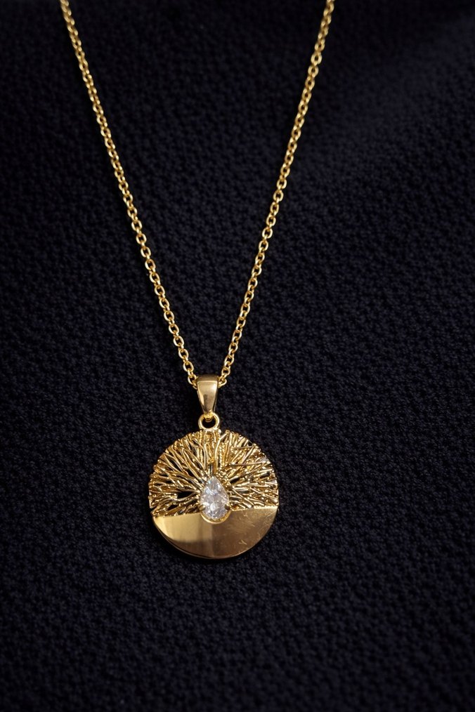 Uzun zincir detaylı, işlemeli görünüme sahip parlak altın kolye, günlük kullanıma klasik ve şık bir dokunuş katıyor. ✨