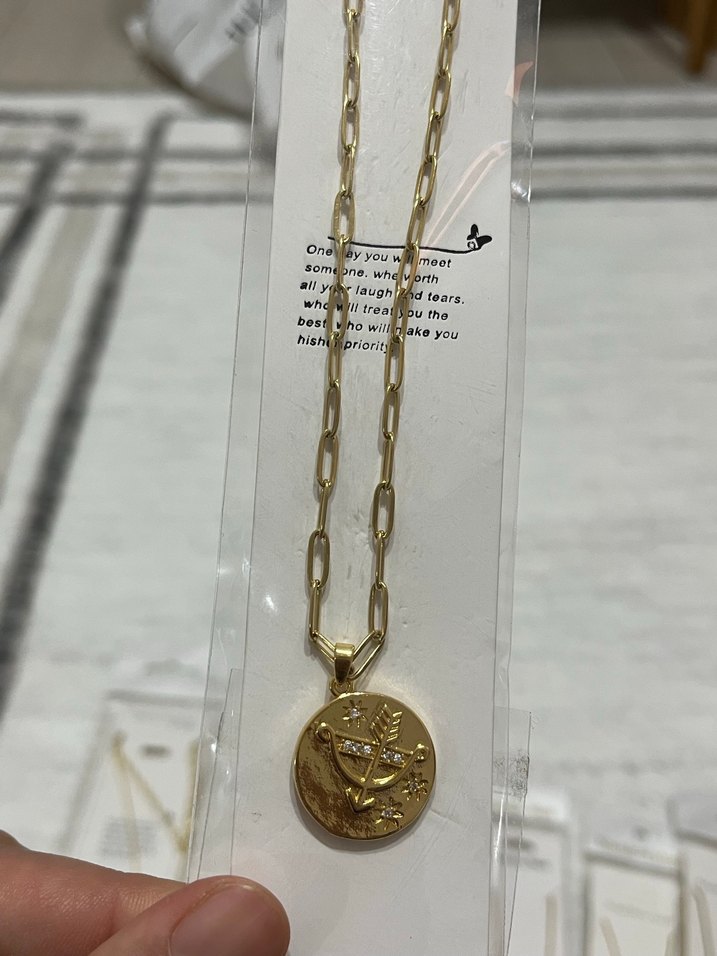 Uzun Zincir Detaylı Altın Renk Çelik Kolye