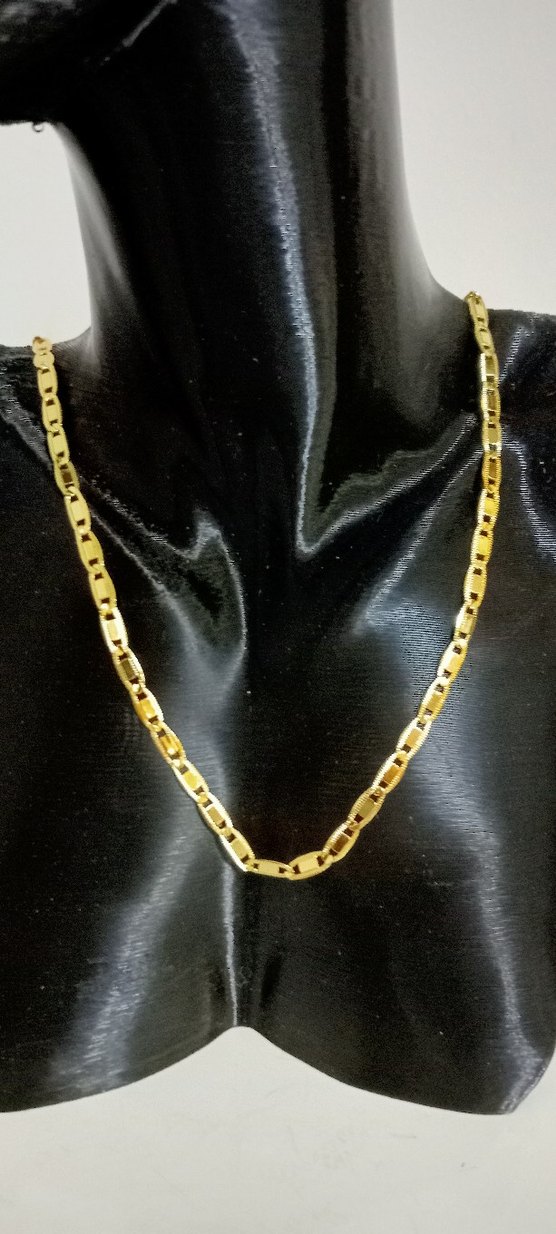 Uzun ve parlak altın renkli, zincir detaylı kadın kolyesi, minimalist tarzda günlük sokak giyimine uygun. ✨