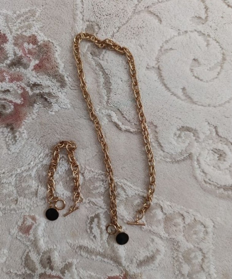Uzun Zincir Detaylı Altın Renkli Kadın Kolye