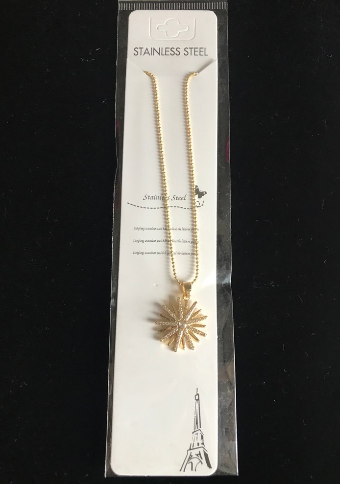 Paslanmaz çelikten uzun zincir detaylı, altın renkli ve baskılı tasarıma sahip kadın kolye. Günlük kullanım için Paris tarzında, klasik ve şık bir görünüme sahiptir. ✨