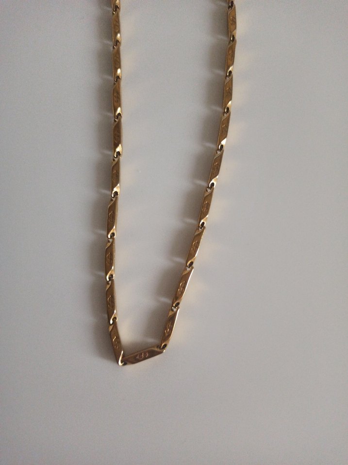 Uzun Zincir Detaylı Altın Renkli Kolye