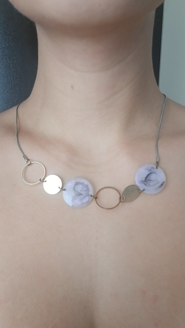 Bej batik desenli uzun zincir detaylı kolye, günlük kullanım için bohem ve minimalist tarzda.