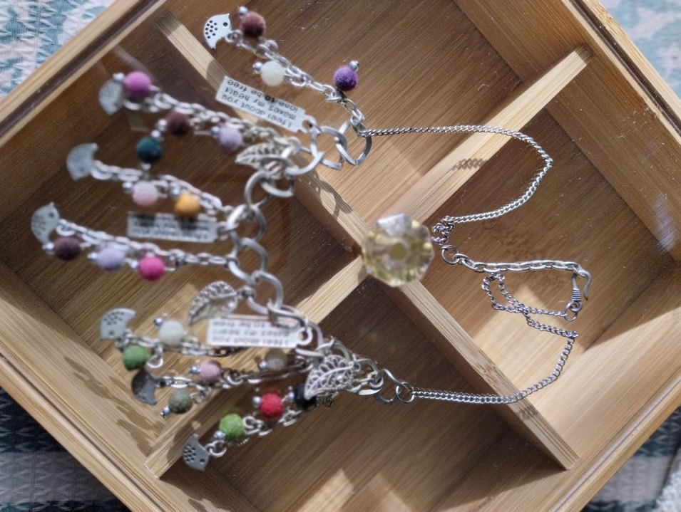 Uzun zincir ve pastel renkli boncuklarla detaylandırılmış, günlük bohem tarzına uygun çok renkli kolye.