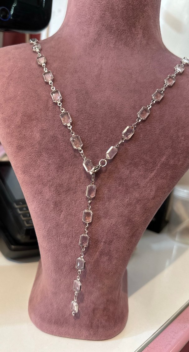 Uzun uzun zincir detayları ve şeffaf taşlarıyla bohem tarzı ve klasik zarafeti birleştiren kadın kolye.