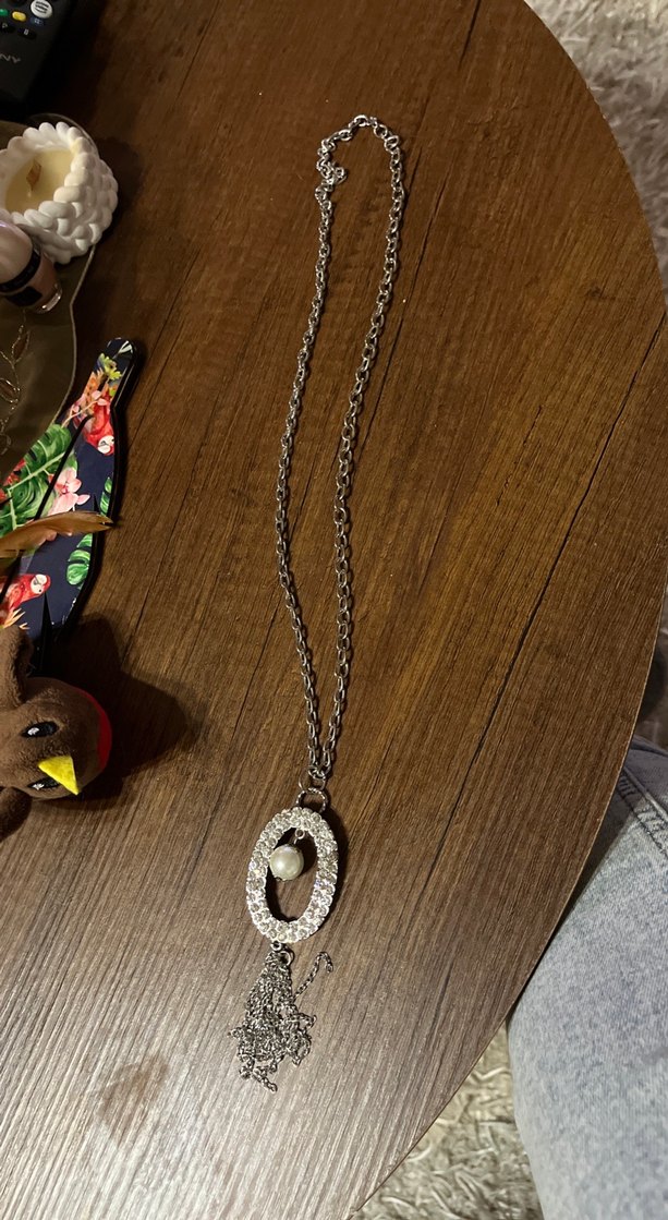 Uzun zincir detaylı, yılan desenli ve inci süslemeli bohem vintage tarzda kadın kolye. Günlük kullanıma uygundur.